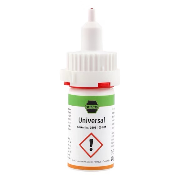 Para acelerar a cura, o ativador arecal pode ser usado. Para materiais problemáticos (PE, POM, PP..), use o primer arecal antes da colagem. Todas as peças a serem coladas devem sempre ser pré-limpas (desengorduradas) e, em alguns casos, também ásperas com lixa!