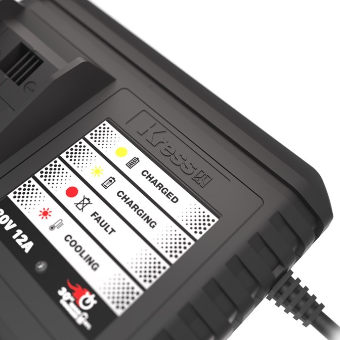 O Carregador Kress 20V 12A KAC22 oferece carregamento ultrarrápido e eficiente para baterias Kress 20V. Com tecnologia avançada, reduz significativamente o tempo de carregamento e garante maior produtividade. Seu sistema de resfriamento por ar impede o superaquecimento, prolongando a vida útil das baterias.