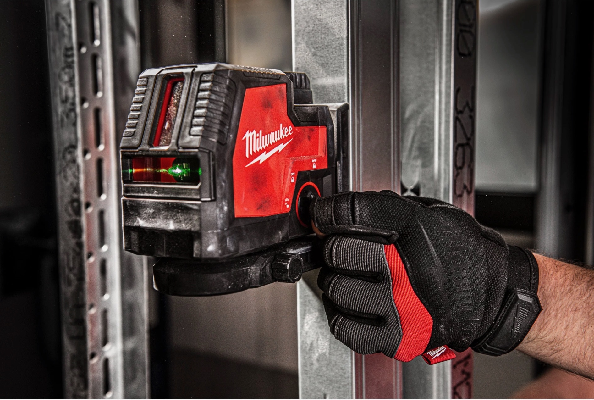 • Laser de linha e ponto Milwaukee com luz laser verde