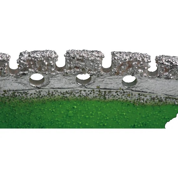• Lâmina de serra circular verde com dentes metálicos serrilhados