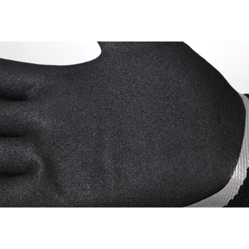 O revestimento superior é um revestimento de nitrilo robusto e aderente para aderência e fixação segura em objetos oleosos.
