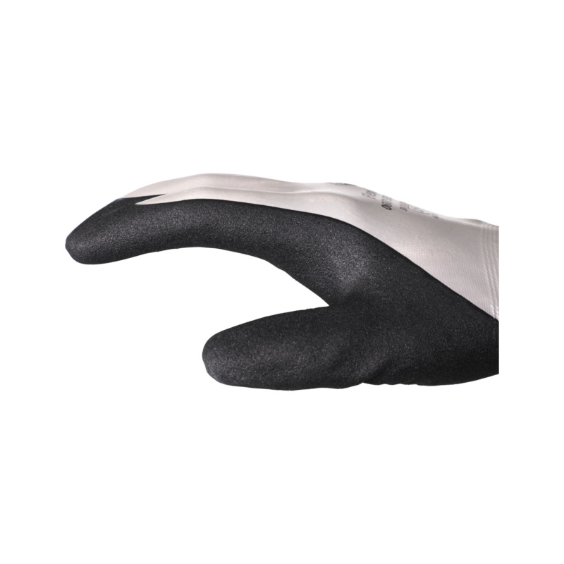 Esses dois revestimentos, combinados com um forro de poliamida estável, resultam em uma luva de proteção de alta qualidade, confortável e flexível para todo o trabalho em ambientes oleosos.