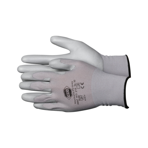 Luva de montagem feita de malha fina de nylon com alto conforto de uso, revestimento de PU na palma da mão e nas pontas dos dedos.