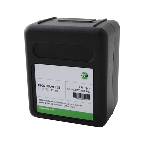 O RECA Reamer é a solução completa para profissionais que precisam de uma ferramenta eficiente para chanfrar e reparar bordas externas de tubos, barras e parafusos. Composto por duas versões (3-19 mm e 13-35 mm), este conjunto permite um trabalho preciso e rápido na remoção de rebarbas e na reparação de roscas danificadas.