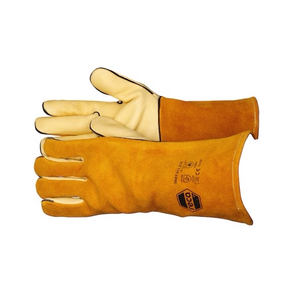 Luva de solda de alta qualidade feita de uma combinação de couro de vaca completa/de de qualidade com alimentação completa para todos os trabalhos de solda com maior desenvolvimento de calor. Costuras reforçadas com fio Kevlar®. O forro macio da palma da mão feita de jersey e o manto com forro de algodão denim dão ao Welder Pro seu alto conforto de uso.